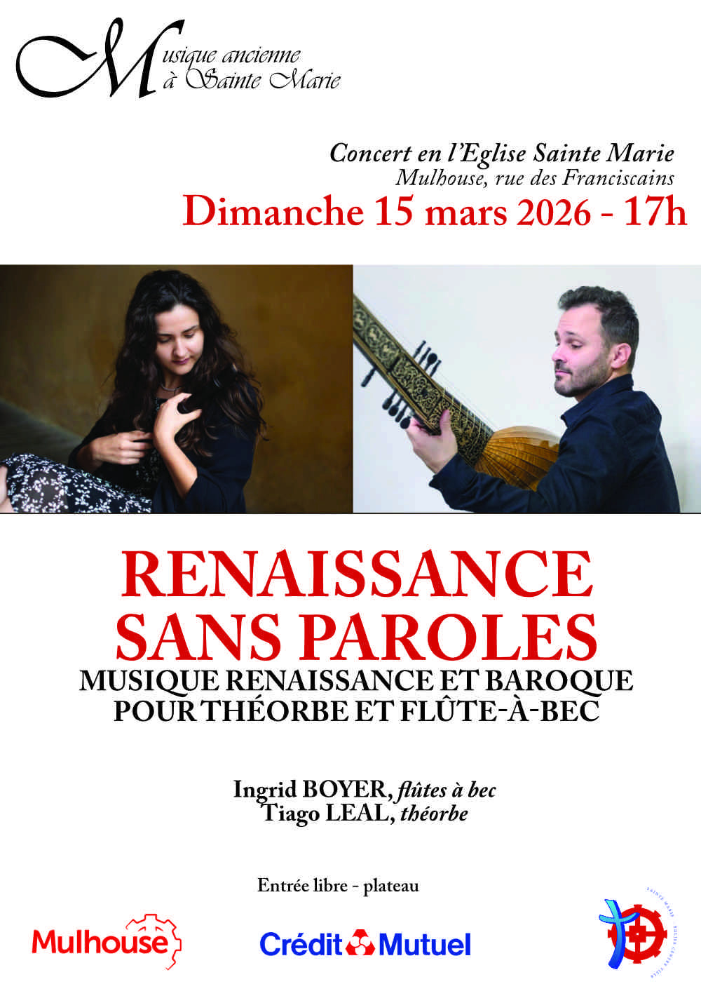 Dans le cadre de la saison de musique ancienne, les amis de la musique ancienne et Sainte Marie – Eglise Centre Ville sont heureux de vous inviter à assister au concert